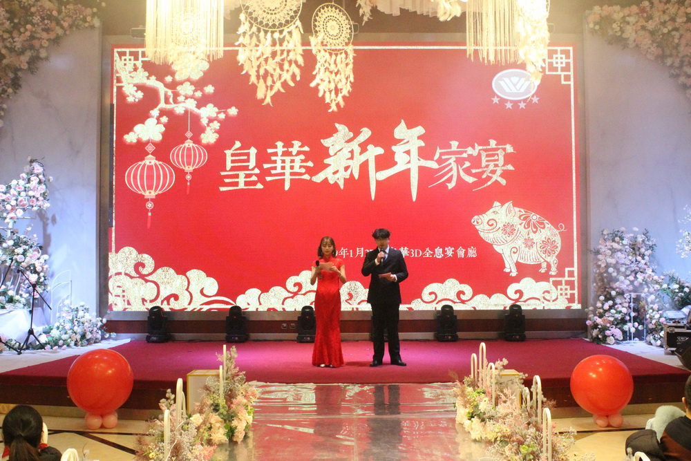 1月27日中午,由集團皇華國際大酒店主辦的“夢想起航再創(chuàng)輝煌”新年家宴在宴會大廳隆重舉行。集團董事長管民良、總經(jīng)理管民祥、副總經(jīng)理周耀庭、黃益寶、財務總監(jiān)郭正基、皇華國際大酒店董事長王衛(wèi)紅、總經(jīng)理夏曉春、建宇機關員工及皇華的全體員工們參加了此次盛宴。