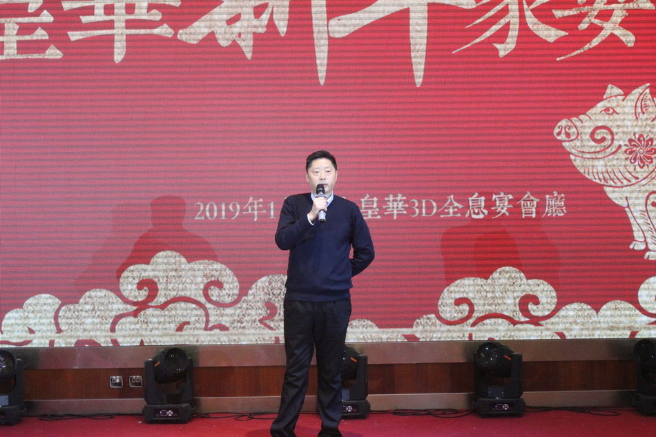 宴會上,集團公司董事長管民良發(fā)表講話,他充分肯定了酒店在過去七年尤其是2018年所取得的成績,集團將不忘初心、加大投入,一如既往的支持酒店的發(fā)展,也希望酒店全體員工不忘初心、用心服務,努力工作,把經(jīng)濟效益和社會效應并重,將皇華品牌做大做強。