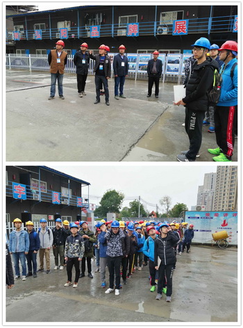 張總首先向同學們強調了施工現場的各項安全注意事項,要求每位同學必須戴好安全帽,服從指揮,有序進入施工現場參觀。接著周月波副經理結合現場標準化展板從工法技術、工藝流程、人員機械配備、標準化作業、安全防護措施等方面向觀摩的大學生詳細地介紹和講解了旭日愛上城項目的基本情況。并通過宣傳展牌集中介紹了集團公司概況、發展歷程和部分優秀項目業績。