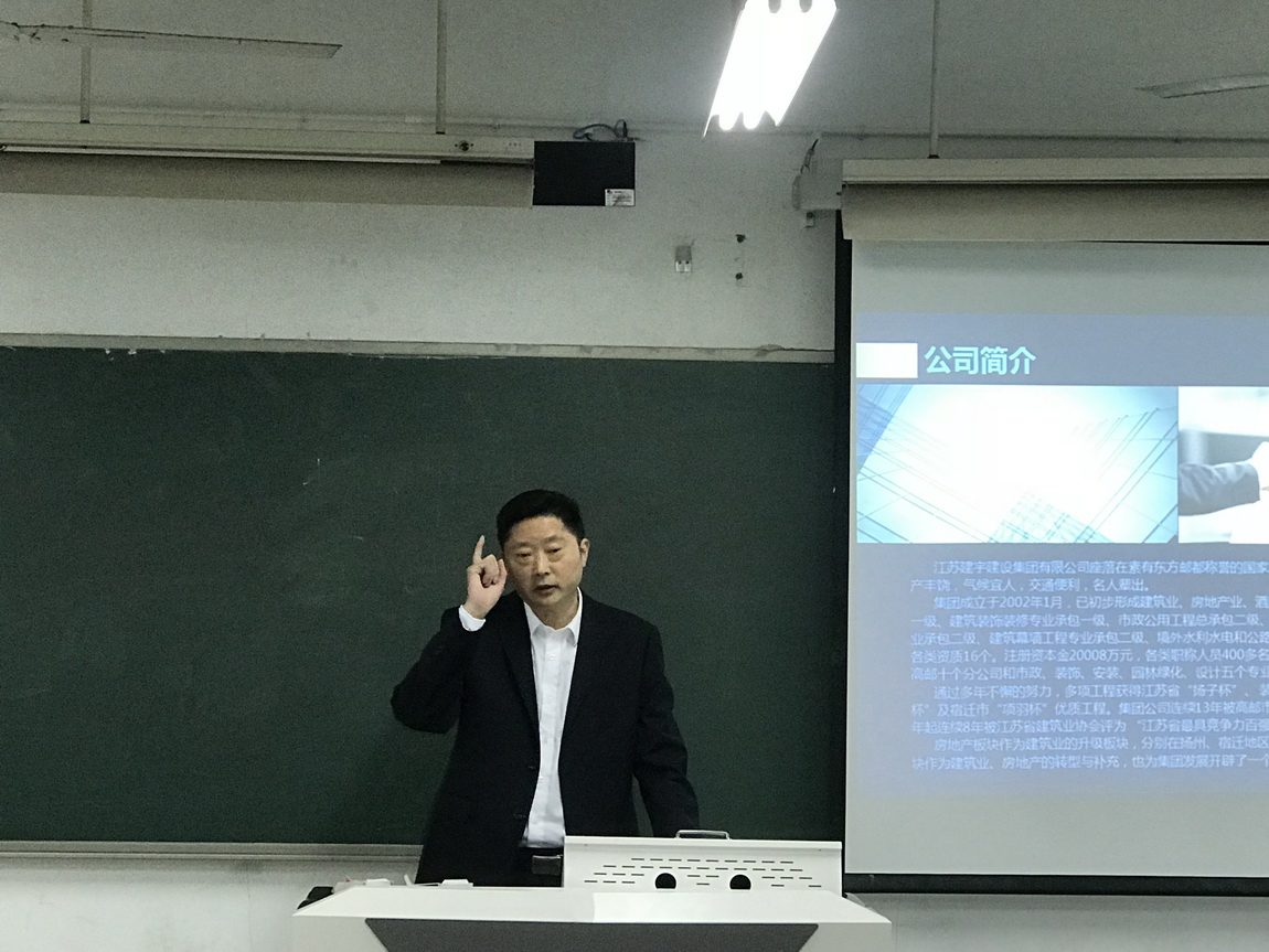 11月7日下午,集團公司在南京工業大學土木學院仁智樓108室舉行了一堂生動的企業宣講會。南工大土木學院副書記周靜、集團董事長管民良、副總經理張幫華、副總經理張天桃、辦公室主任張瑩等相關領導、老師和學生們出席活動。