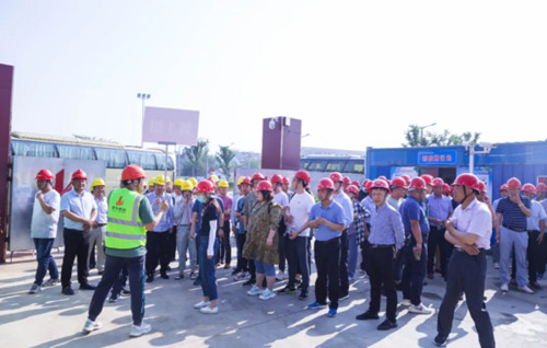 全體觀摩人員分成了三組,聽取了項目概況簡介后,有序在項目現(xiàn)場管理人員的帶領(lǐng)下深入施工場地進行了細致地學(xué)習(xí)與了解。
