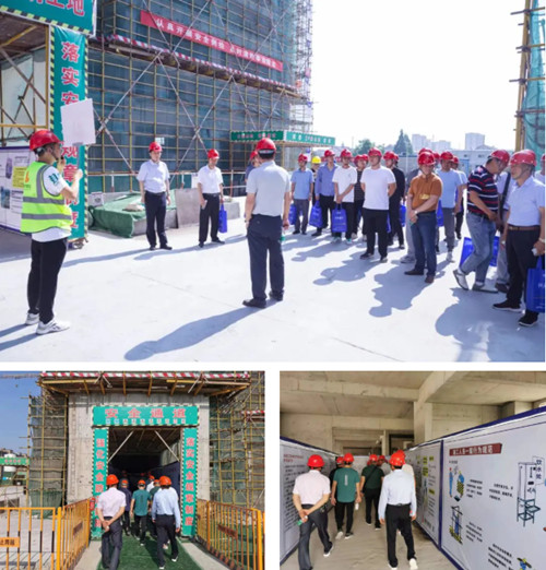 在現(xiàn)場質(zhì)量樣板區(qū)和安全體驗區(qū),觀摩團對項目安全體驗區(qū)、質(zhì)量樣板區(qū)、標(biāo)準(zhǔn)化設(shè)施展示區(qū)、綠色施工展示區(qū)、智慧工地展示區(qū)等特色及技術(shù)應(yīng)用亮點進行了全面體驗式觀摩。