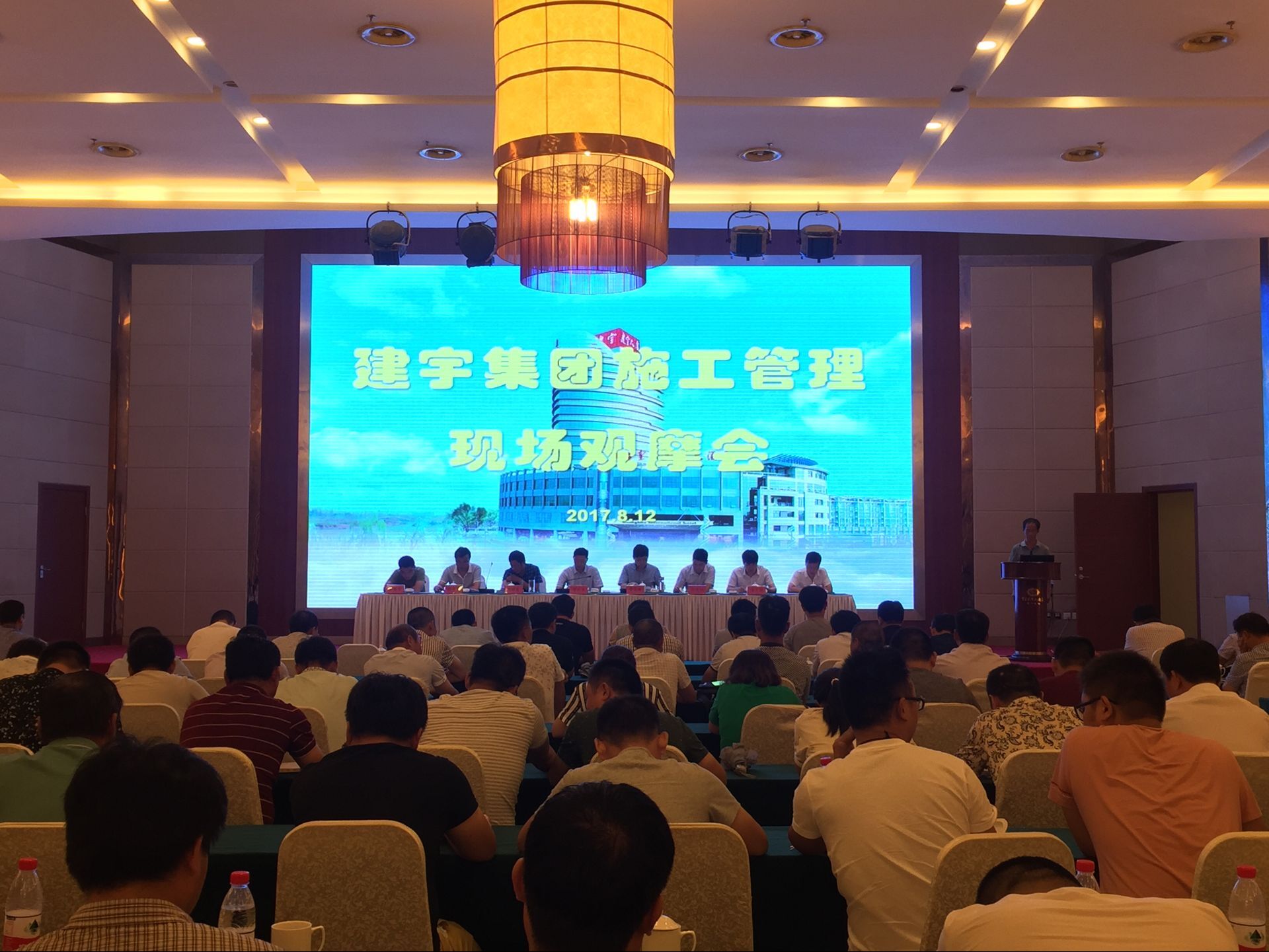 8月12日上午,集團公司在皇華國際大酒店宴會廳召開了施工管理現場觀摩交流會,公司全體人員及項目部骨干人員近160人參加。會議由總經理管民祥主持,董事長管民良講話。