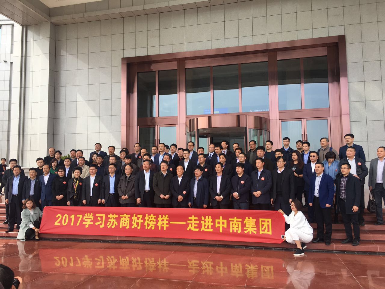 4月12日,江蘇省蘇商發展促進會舉辦了一場以創變,引領全新商業模式為主題的商業大趴”——學習蘇商好榜樣走進中南集團活動。建宇集團今年受邀加入蘇商會并作為副會長單位,董事長管民良與遠東控股集團董事局主席蔣錫培、江蘇揚子江船業集團董事長任元林、寶勝集團有限公司總裁邵文林等在內的60余位各行業標兵企業掌舵手一同集中參觀了中南集團并參加交流會議,會議由蘇商會副會長兼秘書長俞文勤主持。