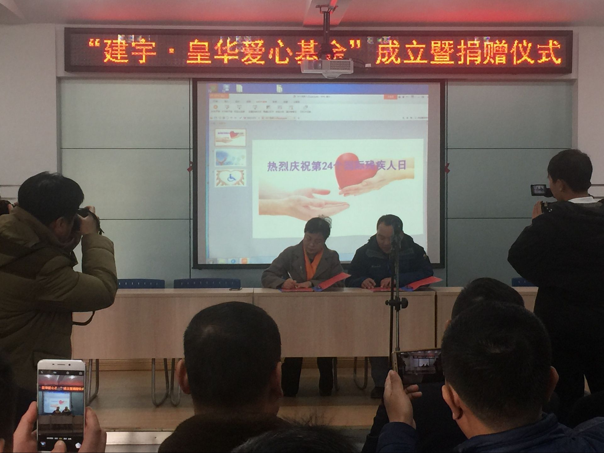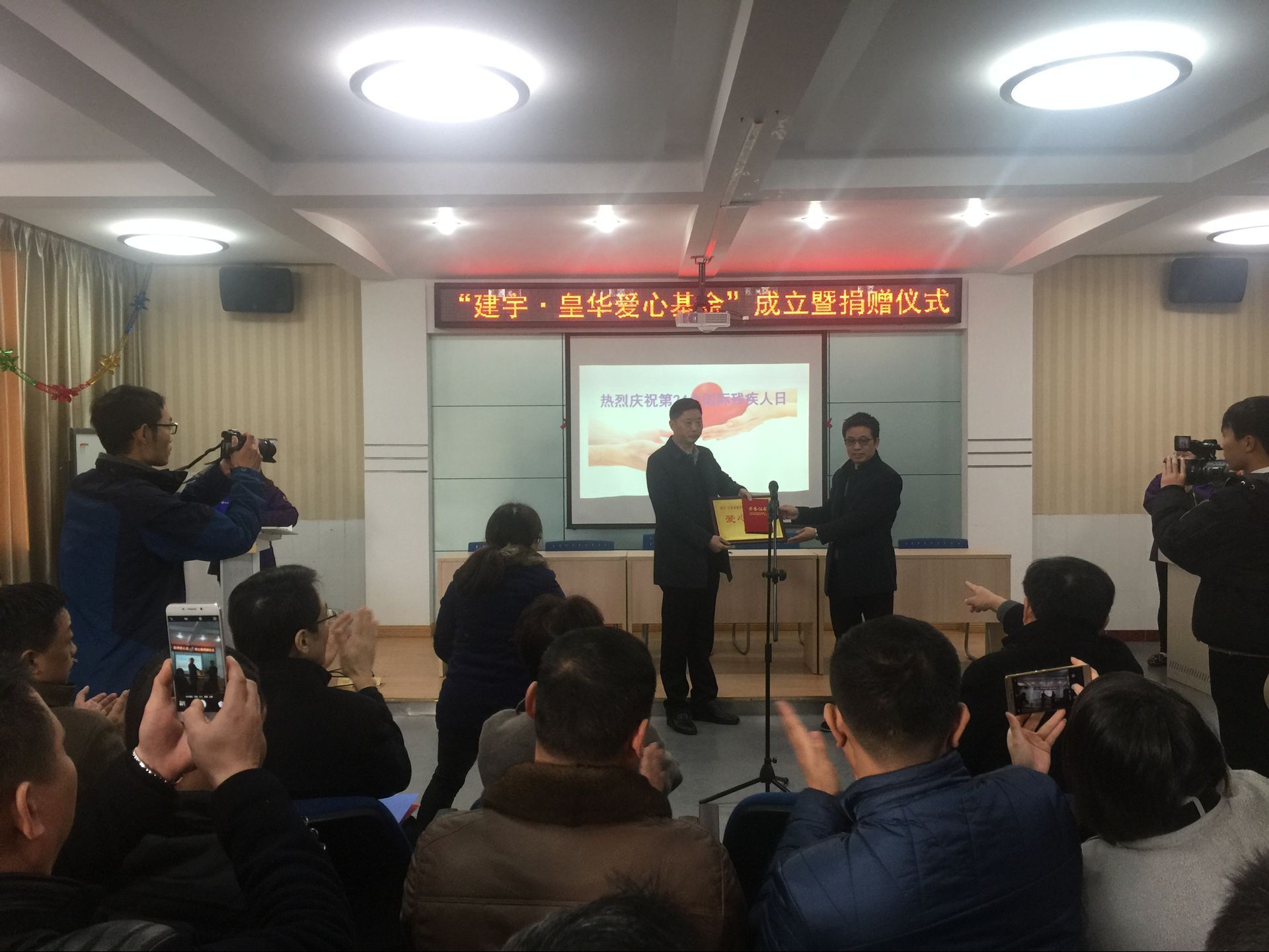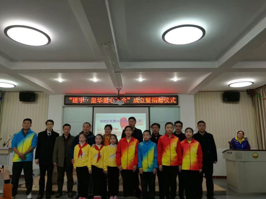 荷花塘特校劉春林校長致歡迎詞,對建宇?皇華愛心基金的捐贈表達(dá)了謝意和敬意,并表示按捐贈協(xié)議規(guī)范用好善款,發(fā)揮其最大功效。市教育局邵局長高度評價了建宇集團(tuán)的此項善舉,對一直支持教育事業(yè)、熱衷公益的管民良董事長表示感謝,盛贊集團(tuán)是高郵的重要企業(yè),是一個社會責(zé)任感很強(qiáng)的企業(yè),多年來得到了社會各界的好評。隨后董事長管民良代表集團(tuán)捐贈,皇華國際大酒店王衛(wèi)紅董事長代表集團(tuán)簽約,殘聯(lián)吉平副理事長為建宇集團(tuán)及管民良董事長頒發(fā)“愛心單位”牌匾和“愛心使者”證書,特校學(xué)生還表演了精心準(zhǔn)備的文藝節(jié)目。