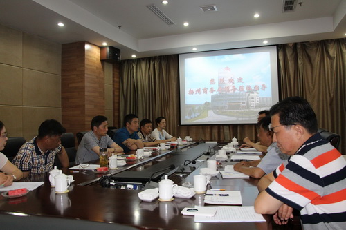 7月13日上午,揚(yáng)州市商務(wù)局外經(jīng)處潘陽(yáng)春處長(zhǎng)、王棟梁副處長(zhǎng)在高郵市商務(wù)局張鋒局長(zhǎng)、盧安偉副局長(zhǎng)、邱昆科長(zhǎng)的陪同下,來(lái)我公司考察。董事長(zhǎng)管民良、副總經(jīng)理黃益寶等接待了考察團(tuán)一行。