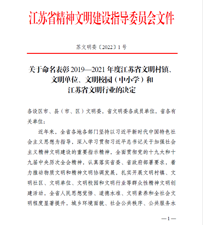 江蘇省文明單位每三年一評,這是集團繼獲評2013—2015年度、2016-2018年度江蘇省文明單位之后,第三次獲得此項殊榮。多年來,在高郵市委、市政府的正確領導下,在省、市文明辦的指導幫助下,集團高度重視精神文明創建活動,在黨群建設、志愿服務、社會責任、品牌形象等各領域贏得各級政府、主管部門的高度認可,獲得了良好社會效應。獲此殊榮,不僅是對以往工作的肯定,也是一份社會責任和擔當。