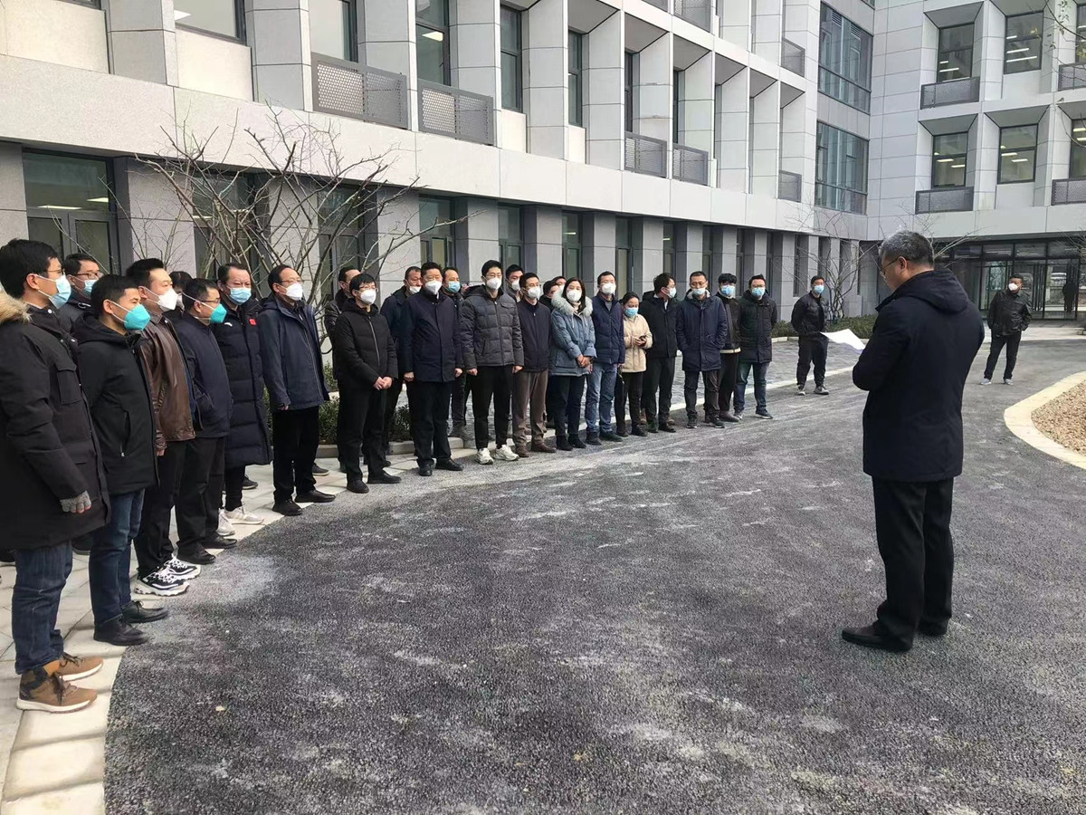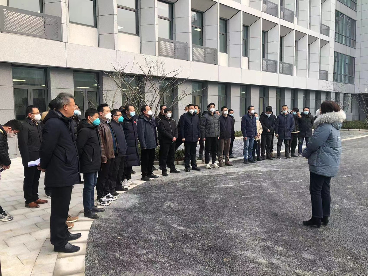 校基建處薛素林處長在基礎樓門前主持驗收會,宣布了參驗人員和驗收程序,在總結環節,對項目質量安全進度給予了綜合好評,對集團精心施工、抗擊疫情、如期交工表示感謝!