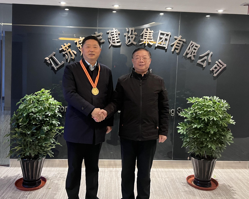 近日,高郵市政協副主席錢富強一行代表市委、市政府親赴建宇集團,授予集團董事長管民良2022年建筑業納稅十強的金質獎章,為建宇鼓勁加油,共謀發展。