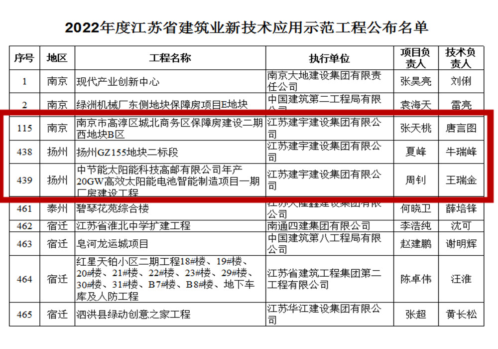 江蘇省建筑業(yè)新技術(shù)應(yīng)用示范工程是指新技術(shù)含量高,在全省有一定規(guī)模和影響的工程。集團(tuán)南京分公司承建的高淳區(qū)城北商務(wù)區(qū)保障房、揚(yáng)州分公司承建的GZ155地塊二標(biāo)段和高郵分公司承建的中節(jié)能一期廠房建設(shè)工程等三個(gè)項(xiàng)目榮獲2022年度江蘇省建筑業(yè)新技術(shù)應(yīng)用示范工程。