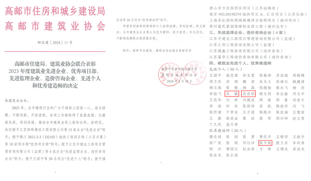 董事長管民良憑借其在建筑業的杰出貢獻,被市委市政府授予“先進個人”的稱號。此外,張天桃同志榮獲“優秀建造師”,吳鎮、吳存陽同志也榮獲建筑業“先進個人”等多個獎項,這些榮譽不僅是對他們個人的肯定,更是對集團整體實力和發展理念的認可。