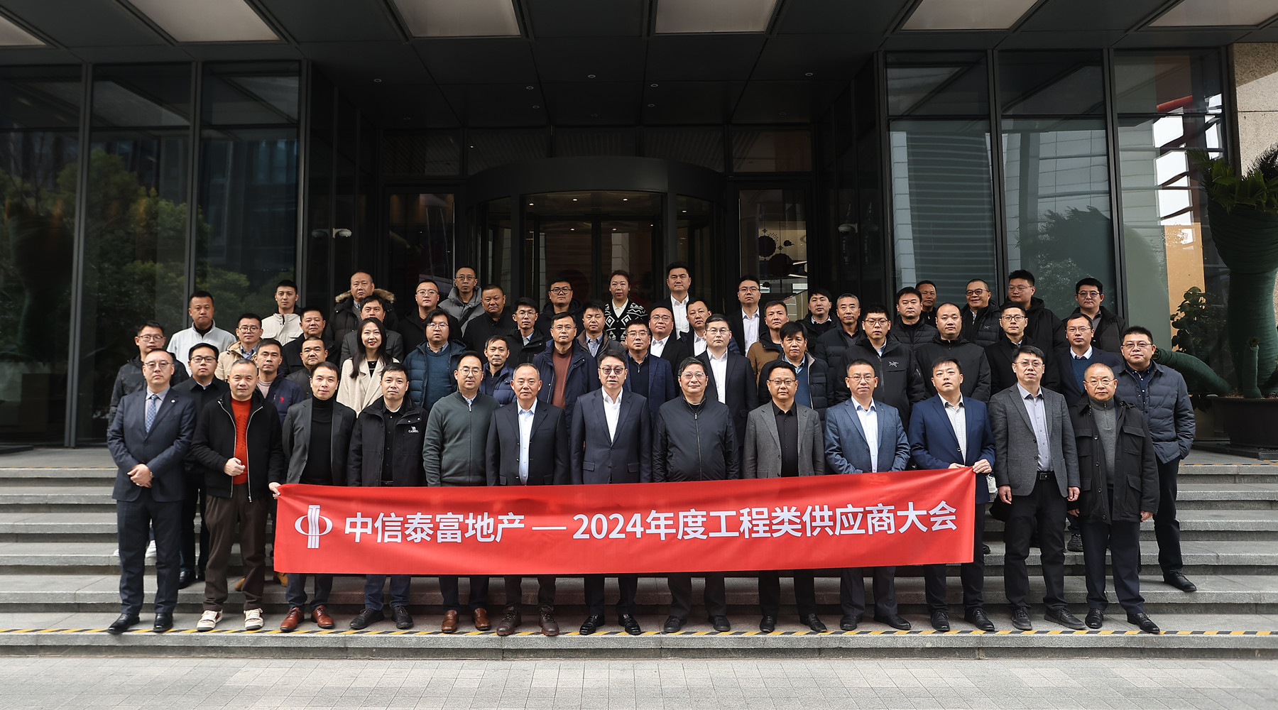 近日,中信泰富地產在上海中信泰富大廈召開2024年度工程類供應商大會。此次大會旨在表彰先進、強化互信,推動合作共贏。中信泰富地產總裁杜平、副總裁鮑三中、總監樊明良等領導出席。集團副總兼揚州公司總經理金大德、分公司總經理助理兼項目負責人孫曉建受邀作為獲獎者參會。