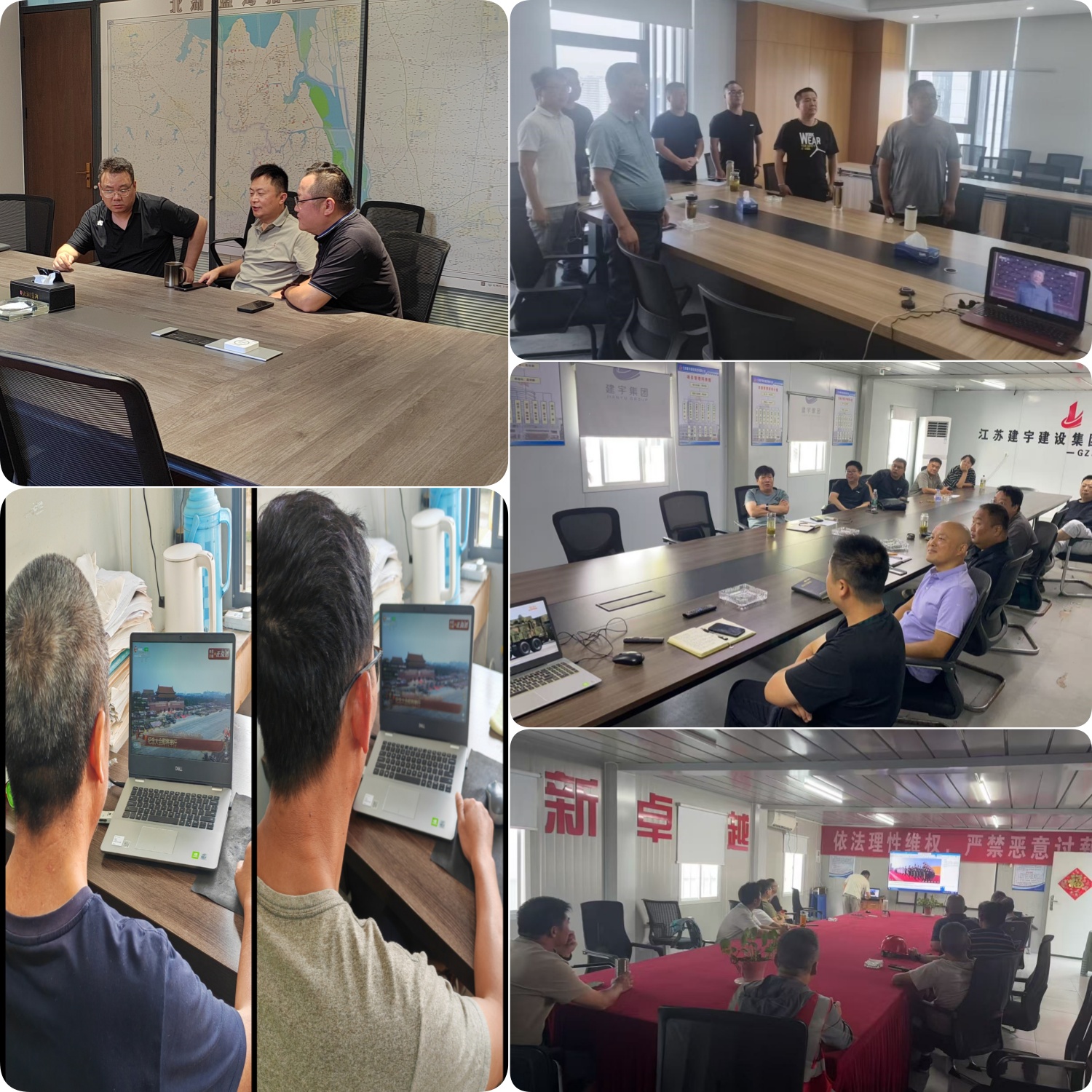 部分分公司組織機關員工在會議室集中觀看,氣氛熱烈莊重;各項目部則組織項目員工及勞務經理部成員在項目會議室觀看,讓奮戰在一線的員工也能感受到閱兵的震撼與鼓舞;還有員工利用手機觀看實時直播,真正實現了全員觀看、全員參與、全員受教育,愛國主義的旗幟在每一個角落高高飄揚。