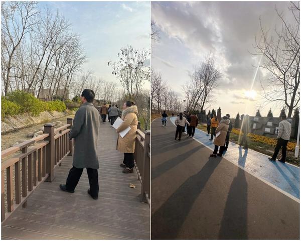 當(dāng)天下午,省文旅廳文保處楊麗霞副處長(zhǎng)、揚(yáng)州文旅局文保處領(lǐng)導(dǎo)及專(zhuān)家一行5人抵達(dá)現(xiàn)場(chǎng),首先沿著 2.3 公里故道沿線全面踏勘,重點(diǎn)核查文物本體保護(hù)、透水混凝土路面鋪設(shè)、智能化照明系統(tǒng)等關(guān)鍵節(jié)點(diǎn),對(duì)文化遺產(chǎn)保護(hù)與市政基礎(chǔ)設(shè)施的融合實(shí)踐進(jìn)行細(xì)致檢查。