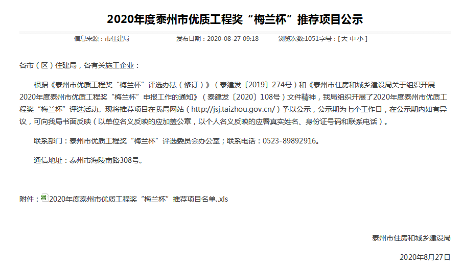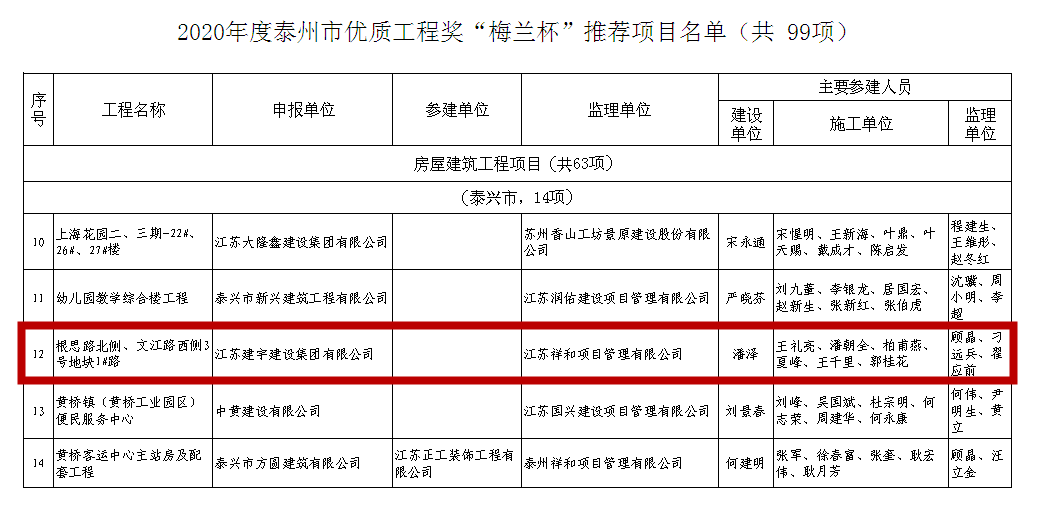 近日,集團項目創優奪牌再獲佳績:泰州分公司承建的“根思路北側、文江路西側3號地塊”項目獲得2020年度泰州市優質工程獎“梅蘭杯”,南京分公司承建的高淳保障房項目順利通過市優質結構工程驗收。