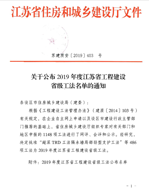 近日,從江蘇省住房城鄉(xiāng)住建廳獲悉,集團(tuán)公司申報(bào)的《裝配式預(yù)制柱套管保壓停頓灌漿施工工法》、《高精度彈簧鋼與定型方鋼模板組合降板吊模支撐施工工法》、《深基坑螺旋自進(jìn)式錨桿樁錨桿樁錨支護(hù)體系施工工法》、《大型勁性鋼骨柱水平滑移+龍門(mén)架吊裝施工工法》、《可調(diào)節(jié)絲牙式伸縮縫模板施工工法》五項(xiàng)工法技術(shù)順利通過(guò)專(zhuān)家網(wǎng)評(píng),獲評(píng)江蘇省住房建設(shè)廳2019年度省級(jí)施工工法,企業(yè)科技創(chuàng)新再添佳績(jī)。